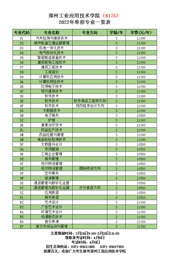 第九条 2022年单独招生专业附后。