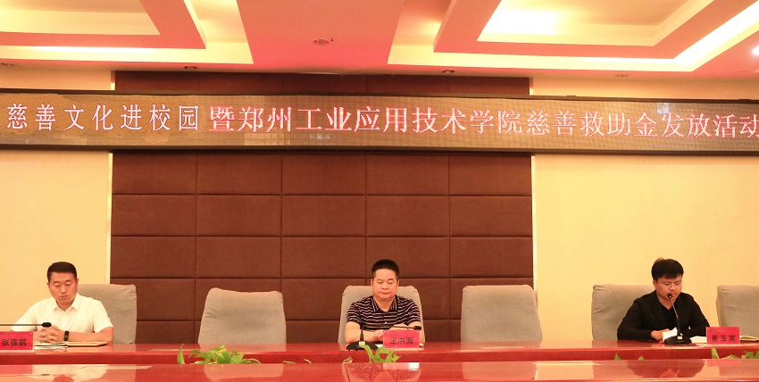 学生处处长崔玉宾主持仪式。他向长期以来一直关心学校教育事业发展的中原华信慈善基金以及社会各界表示衷心感谢。他指出,“慈善文化进校园”项目是我校加强大学生思想道德建设的一项重要举措,为加强大学生思想政治教育创造了平台,希望大家充分领会并积极参与此项目,弘扬慈善文化,传递正能量,传承中华优秀传统文化。